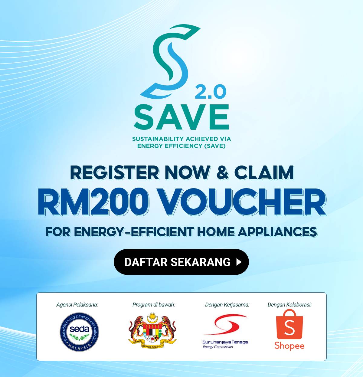 在 2021 年财政预算案里,政府就公布了 SAVE 2.0 计划。这个计划是让民众免费获得 RM 200 折扣卷购买节能的冷气机和冰箱,而这项计划从即日起就能申请了。
